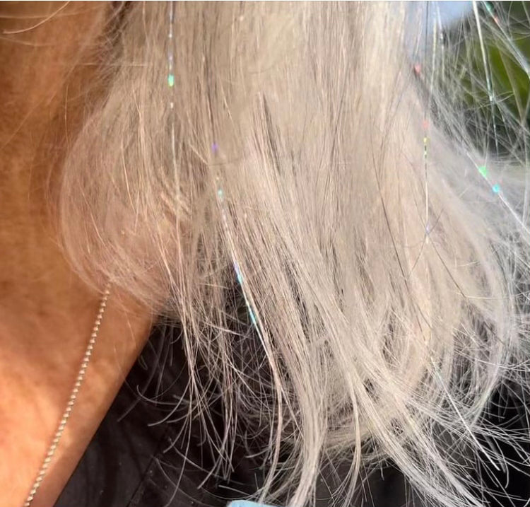 Fairy hair is not a tinsel extension but a silken sparkle strand. It is the finest quality genuine fairy hair and is tied to one strand of hair. It will last until that strand of hair falls out. It can last months or a day.......when will you lose that hair, who can say? Which is why I always give a couple extra. You can wash it, brush it, comb it, curl it, color it, straighten it, blow it dry and get a haircut with it. Do whatever you normally do to your hair but most of all,